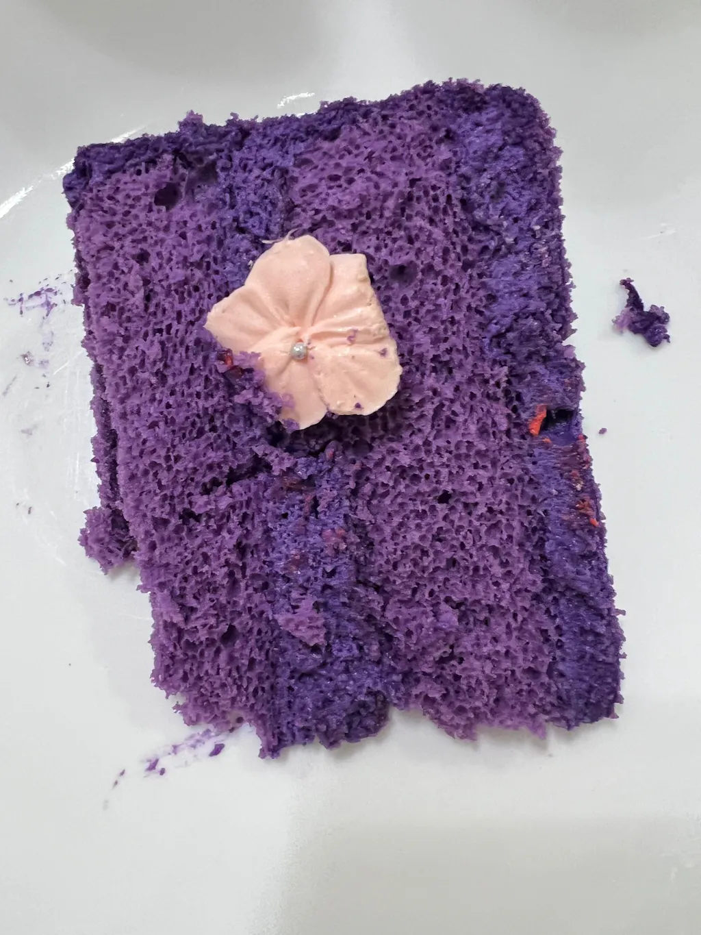 Composed of soft ube chiffon layers with light ube icing. The cake can be adorned with hand-piped buttercream flowers.