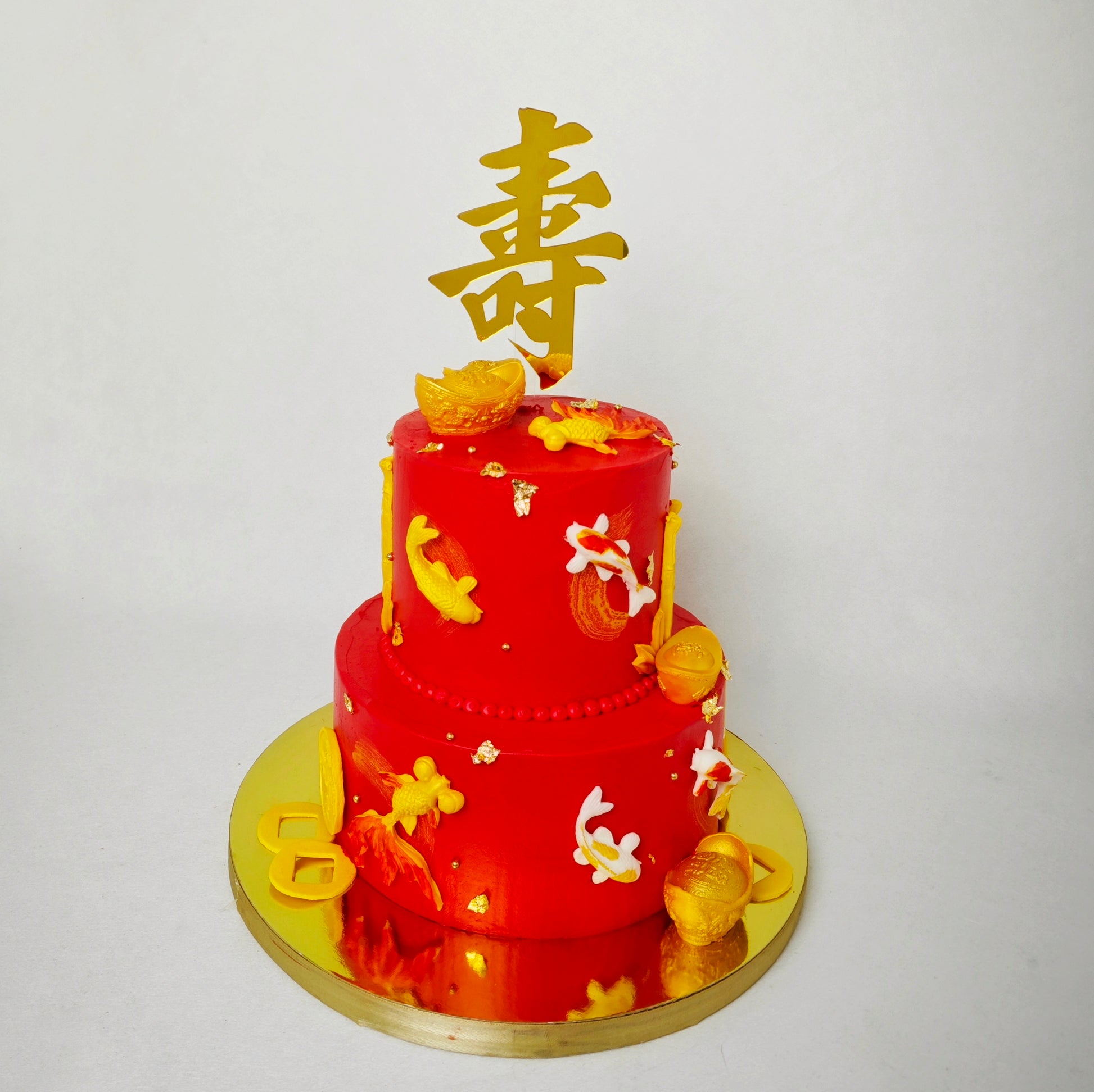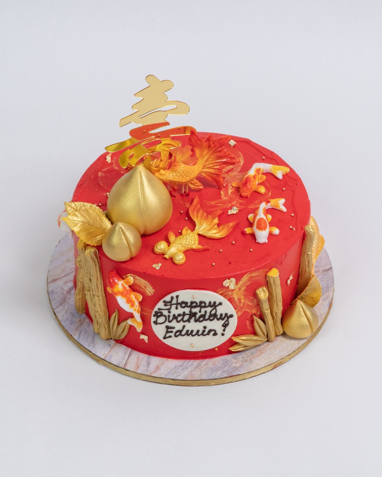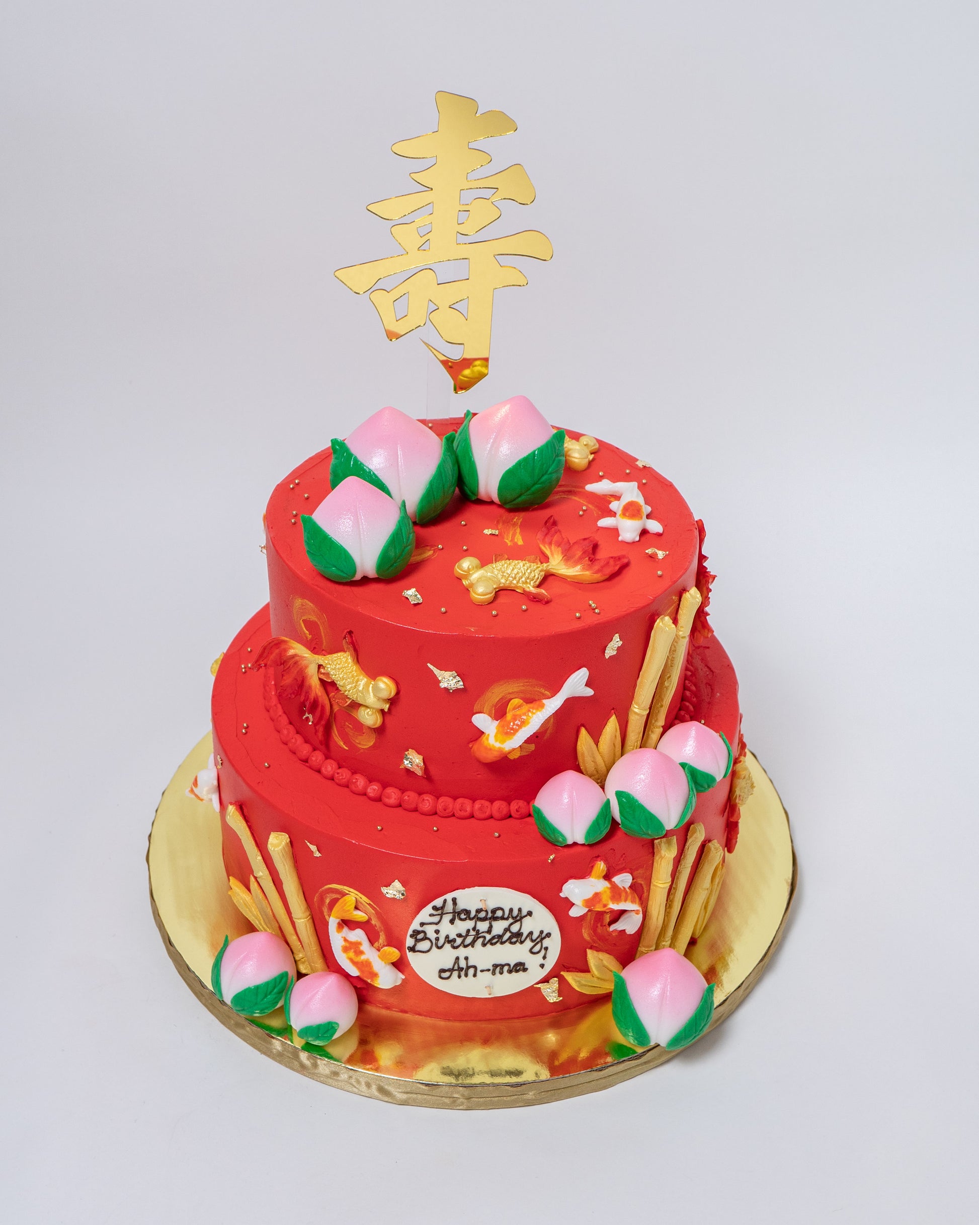 Chinese Birthday Cake - Chinese Long Life Peaches/Koi/Bamboo